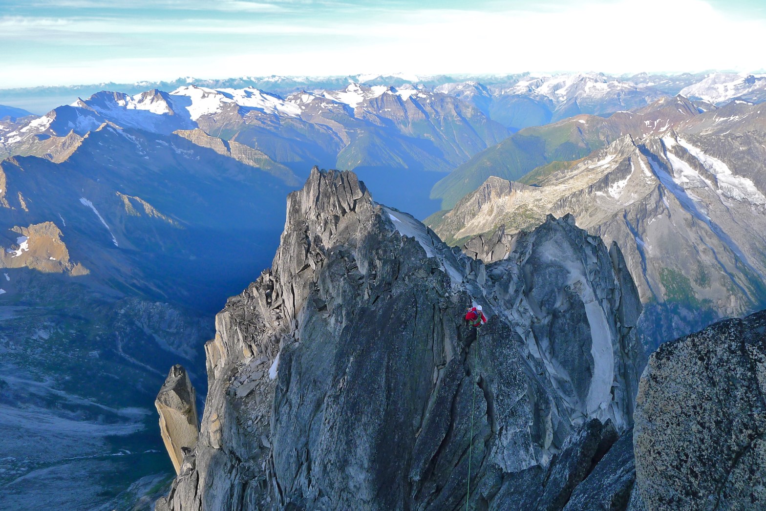 We were only two pitches off the ground, but it was already decision time. Overhead, a short roof loomed, with crack systems wending around either side. Each fissure shot in a different direction up the incomprehensible jumble of the North Howser Tower’s lower west face, in a remote basin of British Columbia’s Bugaboos. Two-dozen rope lengths above, we could make out the amazing dihedral that would take us to the summit ridge and the top of the mountain.